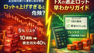 FX自動売買(EA)の選び方で失敗しないために確認すべき5つの基準を解説。プロフィットファクター、最大ドローダウン、ロット管理、バックテスト期間、相場適応力の本当の見方をまとめました。