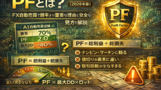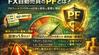 FX自動売買で重要なプロフィットファクター(PF)とは?勝率より重要な理由、目安は1.5以上、ドローダウンとの関係、EA選びで失敗しない基準をわかりやすく解説します。